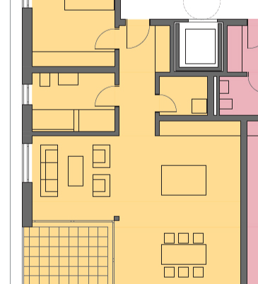 Schöne 3,5 Zimmer Wohnung mit großem Wohn- und Essbereich. Sie bietet zudem eine Terrasse mit Vordach.