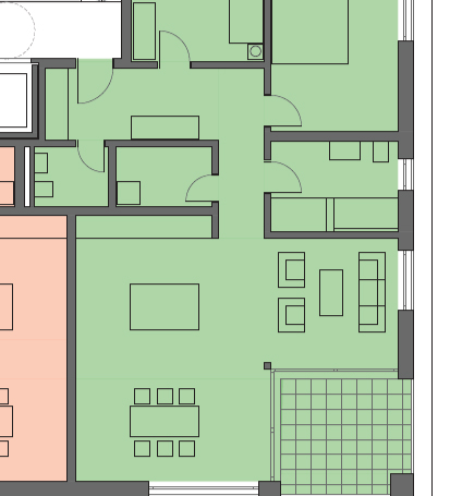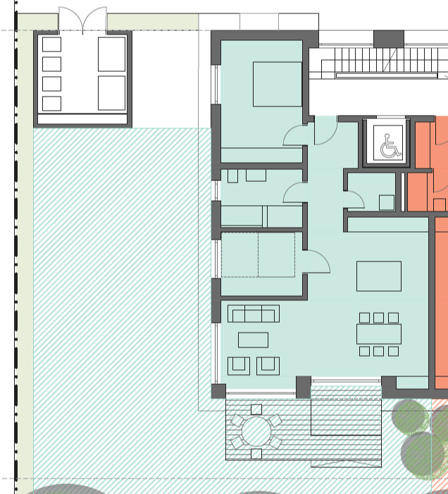 Die Wohnungen im Erdgeschoss erhalten ein Sondernutzungsrecht für die Grünflächen.